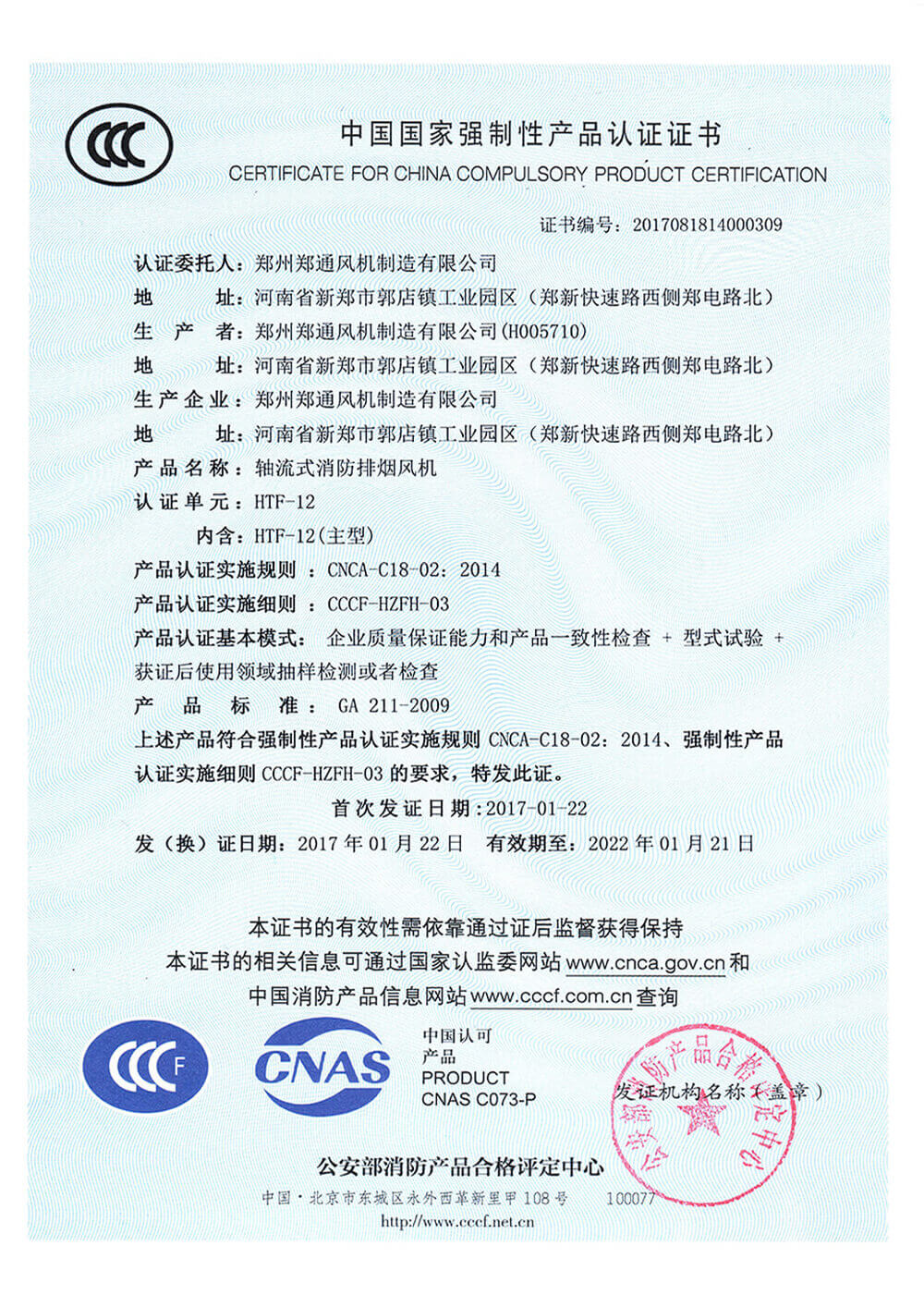 鄭通風(fēng)機主要產(chǎn)品包括:高壓風(fēng)機、不銹鋼風(fēng)機、消防排煙風(fēng)機、防腐防爆風(fēng)機、廚房排油煙風(fēng)機、玻璃鋼風(fēng)機、鍋爐引風(fēng)機、軸流風(fēng)機、柜式離心風(fēng)機、鍋爐引風(fēng)機,產(chǎn)品通過ISO9001、ISO14001、ISO45001國際標(biāo)準(zhǔn)化組織制定的質(zhì)量管理體系認(rèn)證,部分產(chǎn)品通過了3C認(rèn)證和國家防爆電器產(chǎn)品質(zhì)量監(jiān)督檢驗中心認(rèn)證。